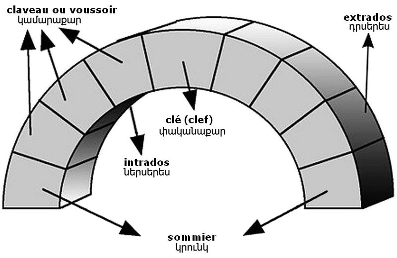 Կամարի և դրա մասերի պարզեցված նկարը: