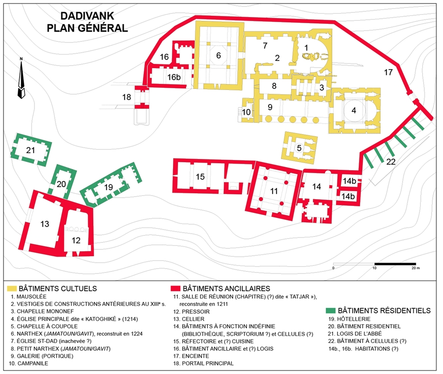 Plan du martyrium et de la chapelle martyriale attenante au nord, d’après Mourad Hasratian 2000, p. 92.