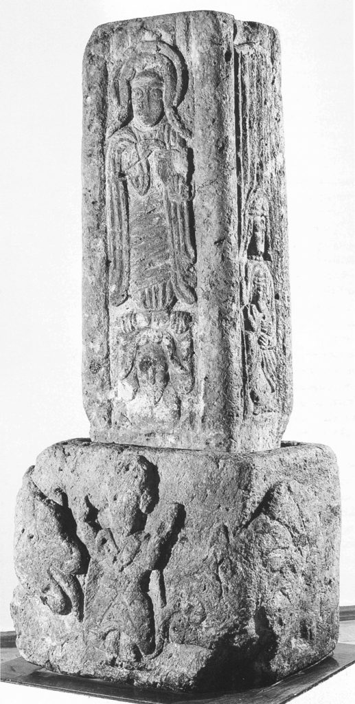 stèle quadrilatérale sur sa base (c. Ve-VIe s.) provenant de Haritj. Le motif sculpté sur la base est : « Daniel dans la fosse aux lions »,