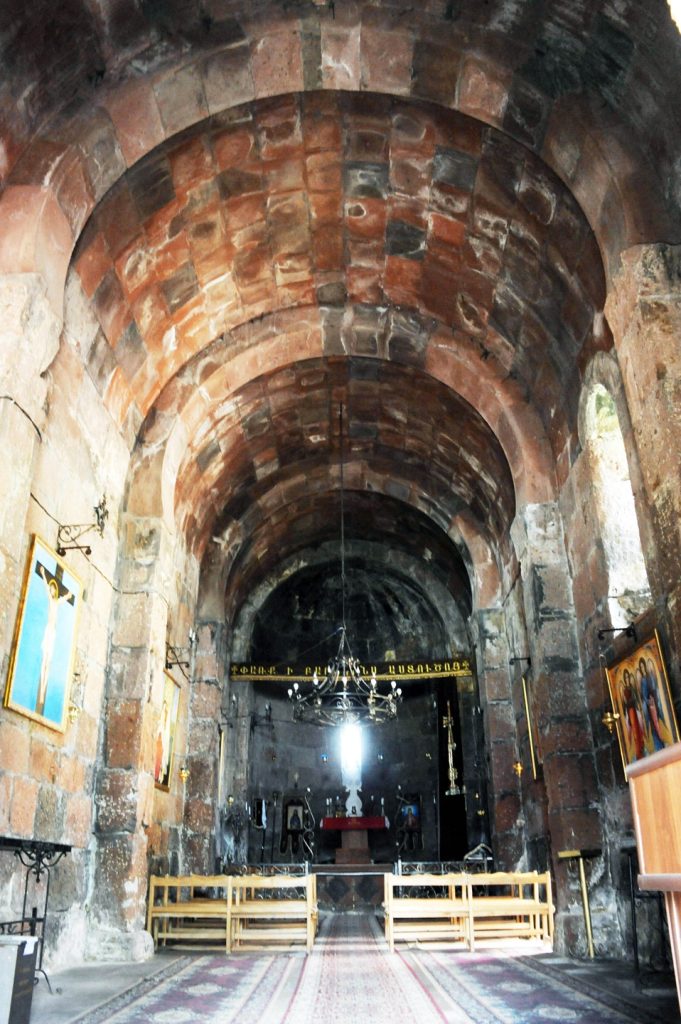 Սանահին վանք, եռանավ գավիթ/ժամատուն (1211 թ.), կենտրոնական նավի ներքին տեսքը ալ.-ամ.: